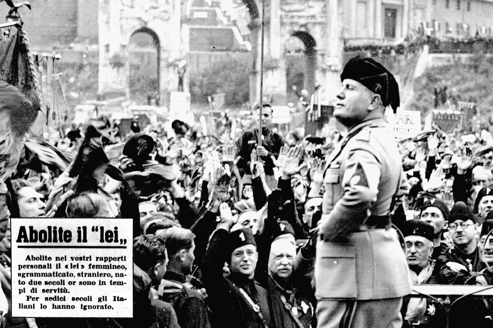 Back in 1938, Mussolini banned this formal use. Riding his anti-globalization linguistic nationalism, he demanded Voi to be used as the mandatory pronoun. Lei was too aristocratic and insufficiently Italian, with its origins clearly tied to the foreign Spanish, once the language of the invaders.
