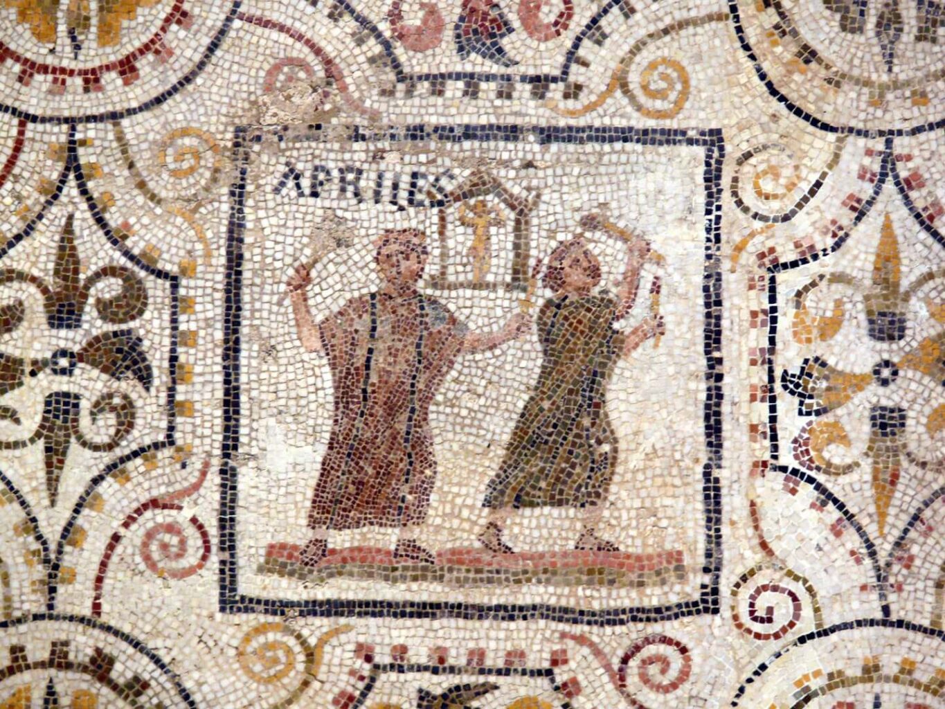 In Roman mosaics, April is represented not by flowers or calm skies but by two men mid-dance, holding sticks. They’re not fighting but performing rituals from ancient festivals tied to rural life. It’s a scene full of rhythm and intention, reminding us that April is movement. It’s transition.